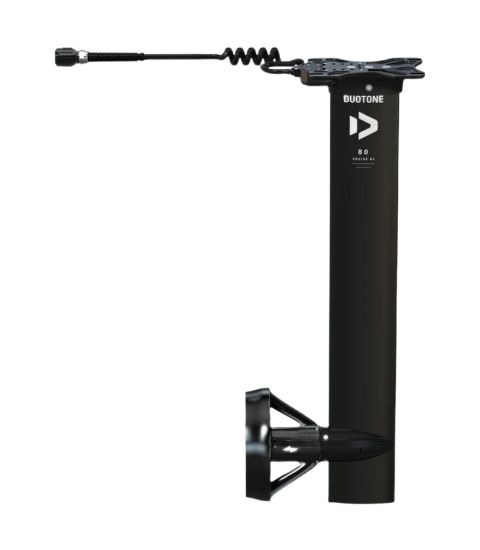 The Duotone DTE eMast AL Cruise Set is designed to make foiling more accessible, safe and versatile, especially for novice and recreational riders. At 80 cm in length, this mast is slightly shorter than the standard Foil Assist Mast AL, making it particularly suitable for those just starting out with electrically assisted foiling or sailing more frequently in waves, rippling water or light swell.