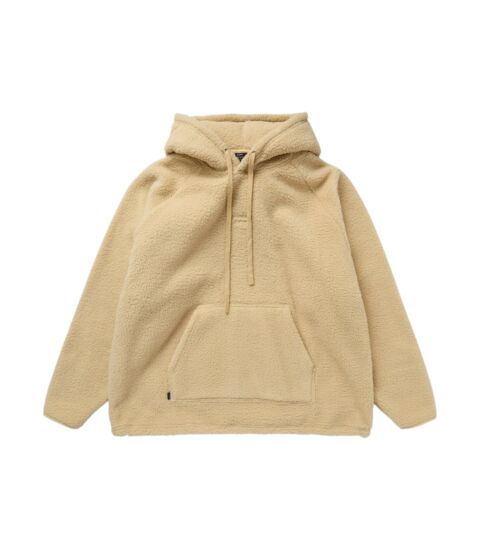 The Mystic Loft Hood Sweat (Light Beige) is a Men's Apparel, Sweats & Vests piece from the 2026 collection by Mystic. This pullover model is specifically designed for the casual surf lifestyle and beach days. The pullover has a Relaxed Fit and is made of 100% polyester teddy fleece weighing 300 g/m². You easily pull this warm hoodie over your T-shirt after an active session.