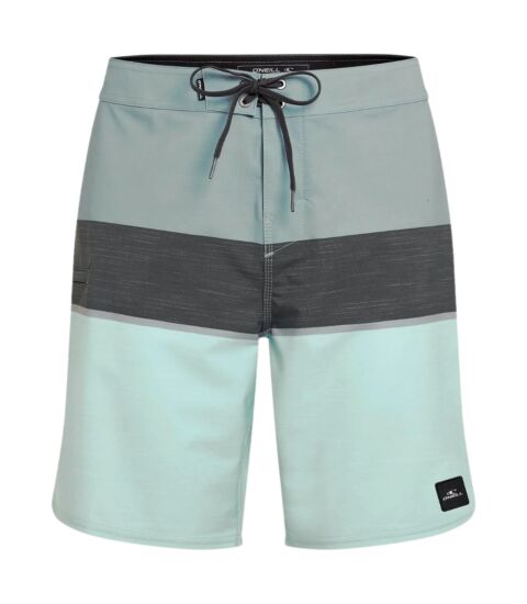 The O'Neill HYPERFREAK HEAT BLOCK 19" is within the Men's Clothing, Board & Swim shorts category and belongs to the 2026 collection. These blue swim shorts (mint green and gray) from O'Neill are made of technical material with stretch. The 19-inch leg length provides a fit that falls above your knee. This provides ample freedom of movement for active surfers and athletes at the beach.