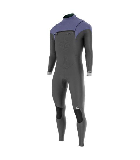 This wetsuit features an asymmetrical front zipper. The panels are triple glued and stitched together with a special technique, where the material is partially punctured the waterproofness of the seams is maintained.