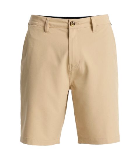 Information found on the internet for item EQYHY03881: This is the Quiksilver Union Amphibian 19" shorts. The material is a blend of Repreve recycled polyester and elastane. The shorts feature a DryFlight water repellent coating and have a regular fit fit with a zipper and button closure. The Kangaroo color matches the beige hue in the images.