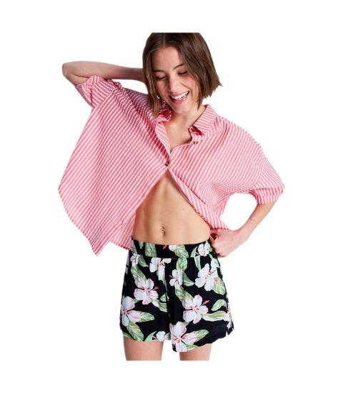 The Roxy LEKEITIO BA Y belongs to the Women's Clothing category, Beach Shorts from Roxy for the 2026 collection. These shorts in the color black (with a tropical floral print) are designed for a casual lifestyle. The garment is made of 100% viscose. The relaxed fit and lightweight fabric make this item suitable for beach wear or active pursuits on warm days.