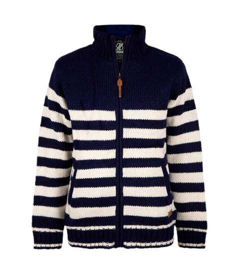 Are you looking for a stylish and comfortable cardigan that is both warm and has a maritime look? This men's wool cardigan is just what you're looking for!